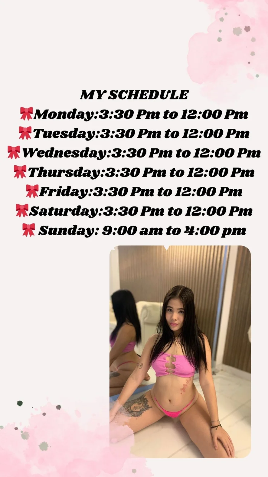 Pecorina, Ahegao, Sculacciate, Ballo erotico, Ditalino, Dildo o Vibratore, Spogliarello, Tacchi, Gagging, Gola profonda, Giocattoli anali, Giocattoli erotici, Pompino, Tittyfuck, Masturbazione, Orgasmo, Giocattoli per capezzoli, Giochi di ruolo, Topless, Spettacolo con olio, Twerk, Zoccolo di cammello, Fisting, Squirt, Umiliazione, Anale